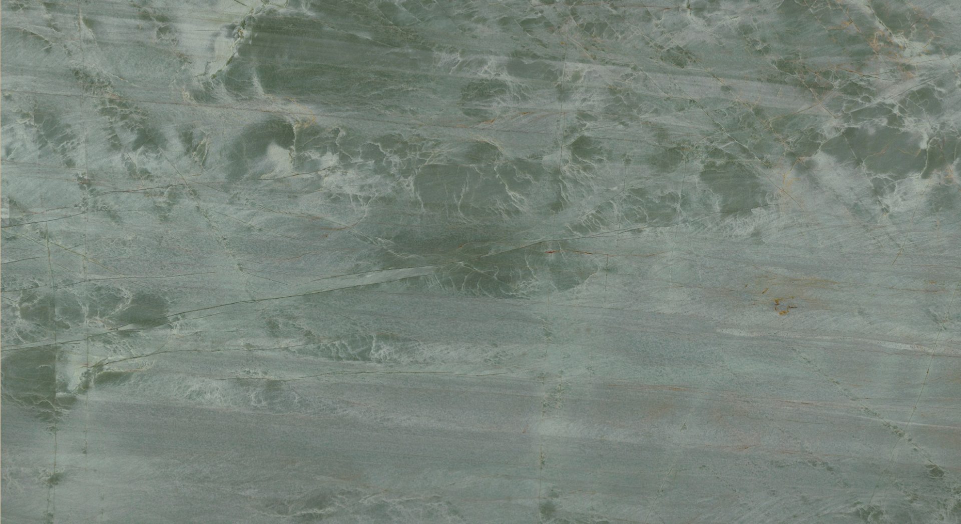 This natural quartzite, also known as Verde Esmeralda, features white veining and sandy tones, set against a greenish background reminiscent of a rolling sea. A truly captivating stone.
